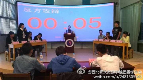 2013年9月27日晚7点,万象城娱乐awc线路学生辩论大赛第一场赛事在教学10号楼7楼激烈展开。此次辩论赛的主题是:城市发展首打经济牌还是文化牌。正方是来自2013级专升本班的同学,他们所持的态度是城市发展应首打经济牌。反方是来自2013级旅游管理1班的同学,他们所持的态度是城市发展应首打文化牌。