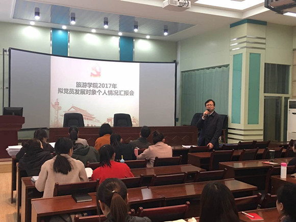 根据中共教育部党组下发的《普通高等学校党建工作标准》及《中国共产党发展党员工作细则》和《中国中产党章程》的精神,为了全面贯彻落实从严治党的要求,进一步提升党员发展的质量。2017年3月22日,万象城娱乐awc线路召开入党积极分子个人情况汇报会。学院党委书记李发舜、党委副书记谢致远等5名同志参加并听取了此次汇报会,学院36名积极分子参加了此次汇报会。汇报会由党务秘书韩若苑主持。