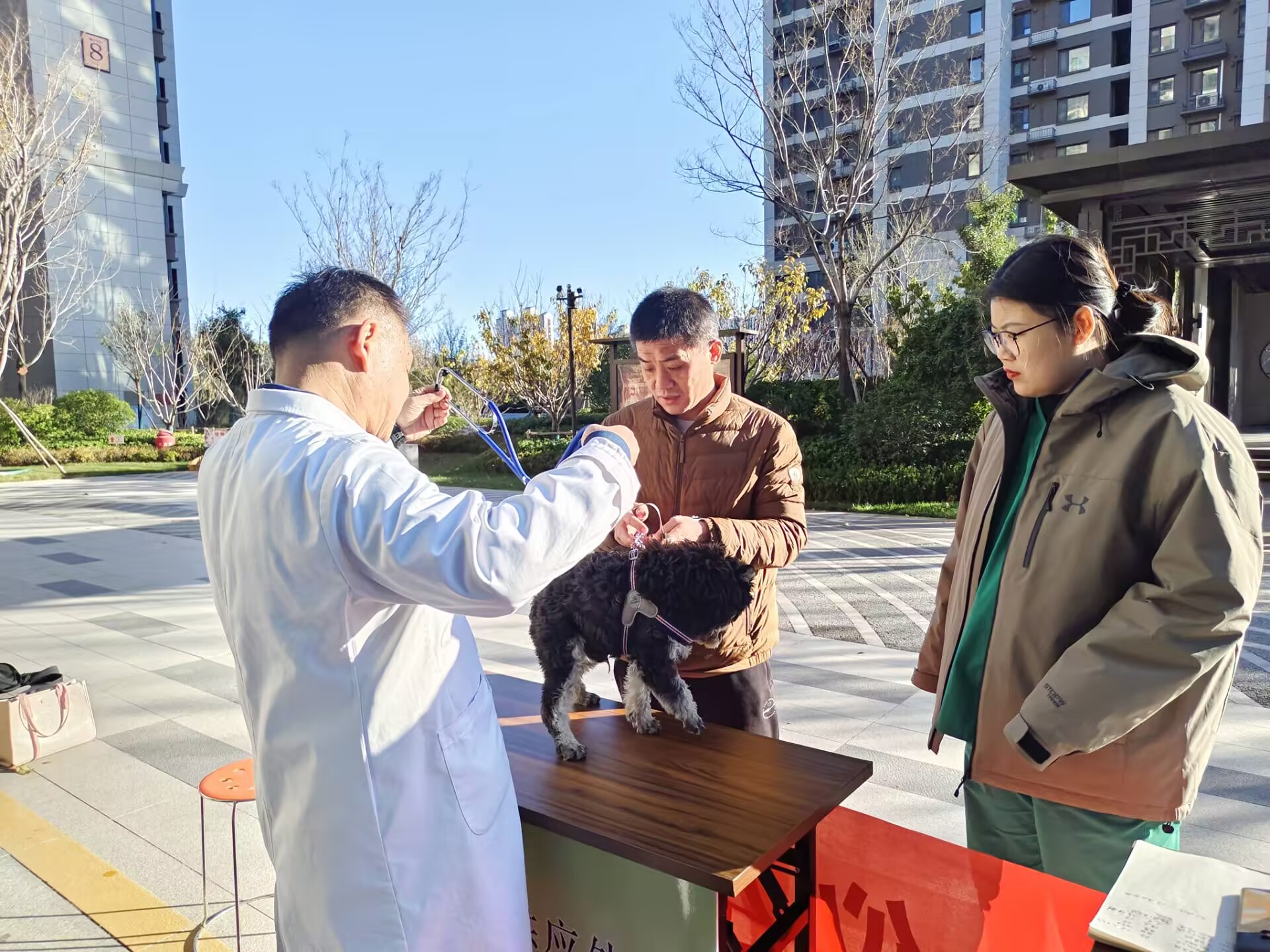 本次活动邀请到聊城心仪动物医院的李学善院长坐诊,以“关爱宠物健康,提供专业服务”为主题,进行现场义诊和宠物健康知识宣传。活动伊始,工作人员为宠物们提供了健康检查服务,每一只宠物都进行了细致入微的健康检查,让居民们了解宠物的身体健康状况。