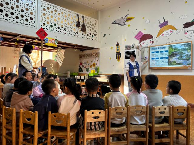 在她的生动讲解下,小朋友们对园林植物有了更加深入的了解,对园林文化和历史产生了浓厚兴趣。当李璟芮借助栩栩如生的PPT,将拙政园的历史变迁娓娓道来时,一扇通往古典园林的时光之门仿佛在小朋友们的面前缓缓打开,园林艺术的独特魅力在此刻展现的淋漓尽致。