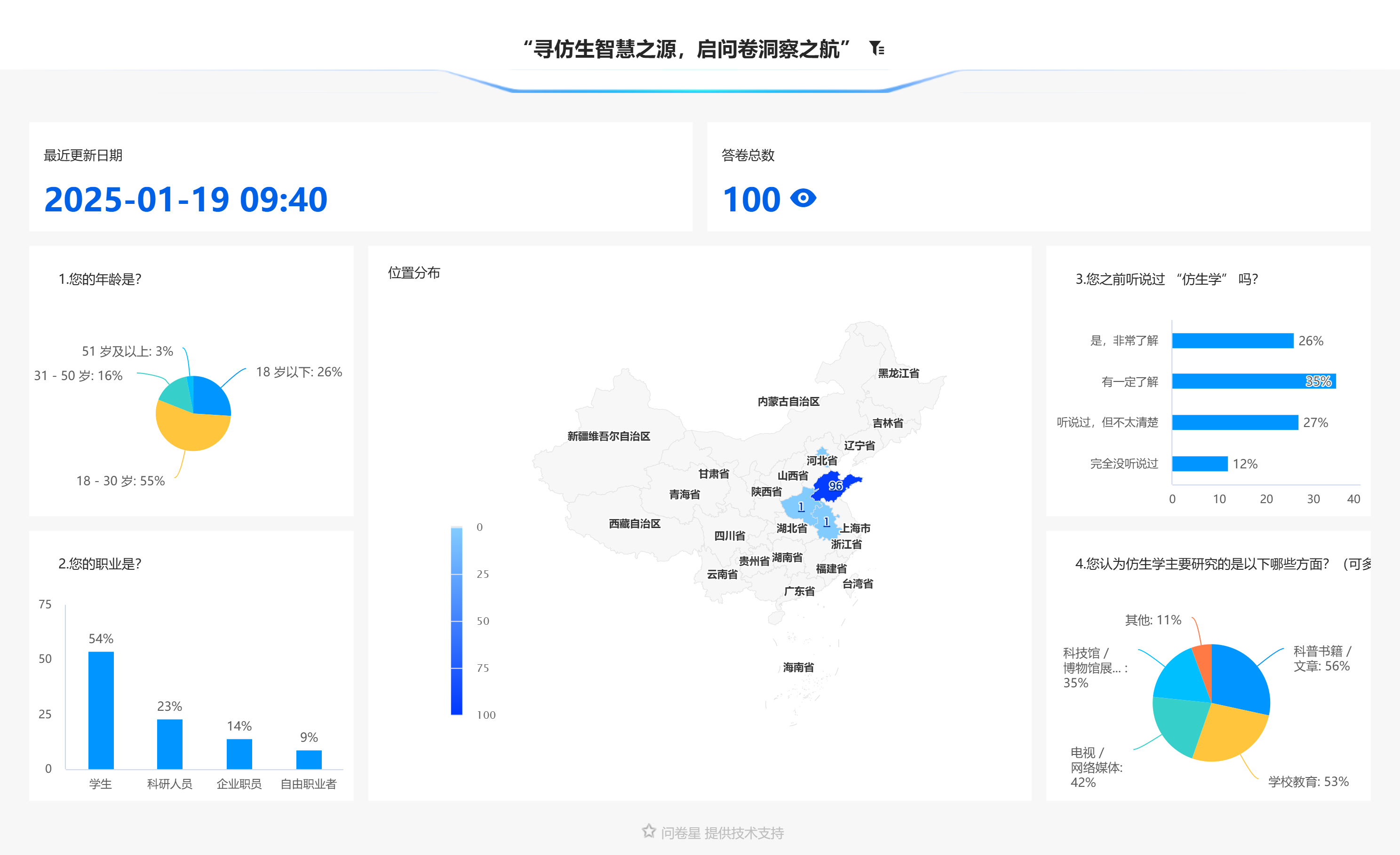 为了深入了解公众对仿生学的认知、应用及其在现代科技和生活中的重要性,1月13日,“仿生启新程,科技创未来”志愿服务队于线上举办“寻仿生智慧之源,启问卷洞察之航”调研活动。