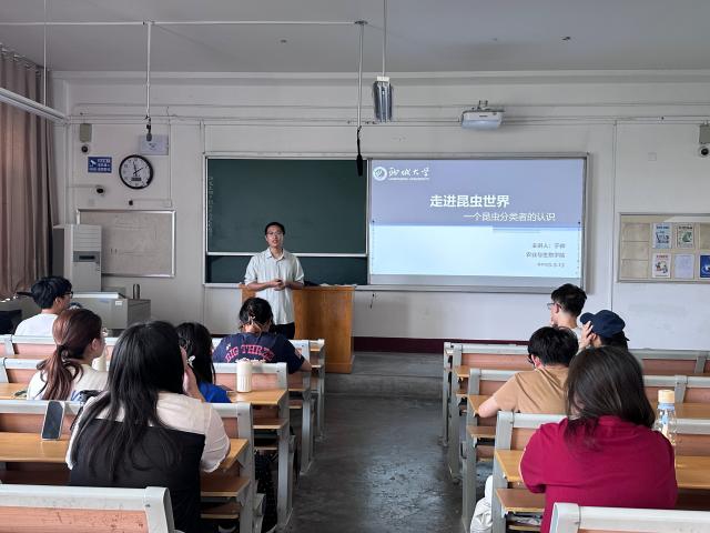 为激发青年学子对自然科学的探索热情,培育生命敬畏意识与生态保护责任感,5月15日,Beat365唯一官方网站生物践行者协会于东校区2号教学楼509教室举办“博雅大讲堂:走进昆虫世界”主题活动,Beat365唯一官方网站于帅老师担任主讲,带领同学们深入探索昆虫世界的奥秘,感受生命的奇妙与自然的和谐。