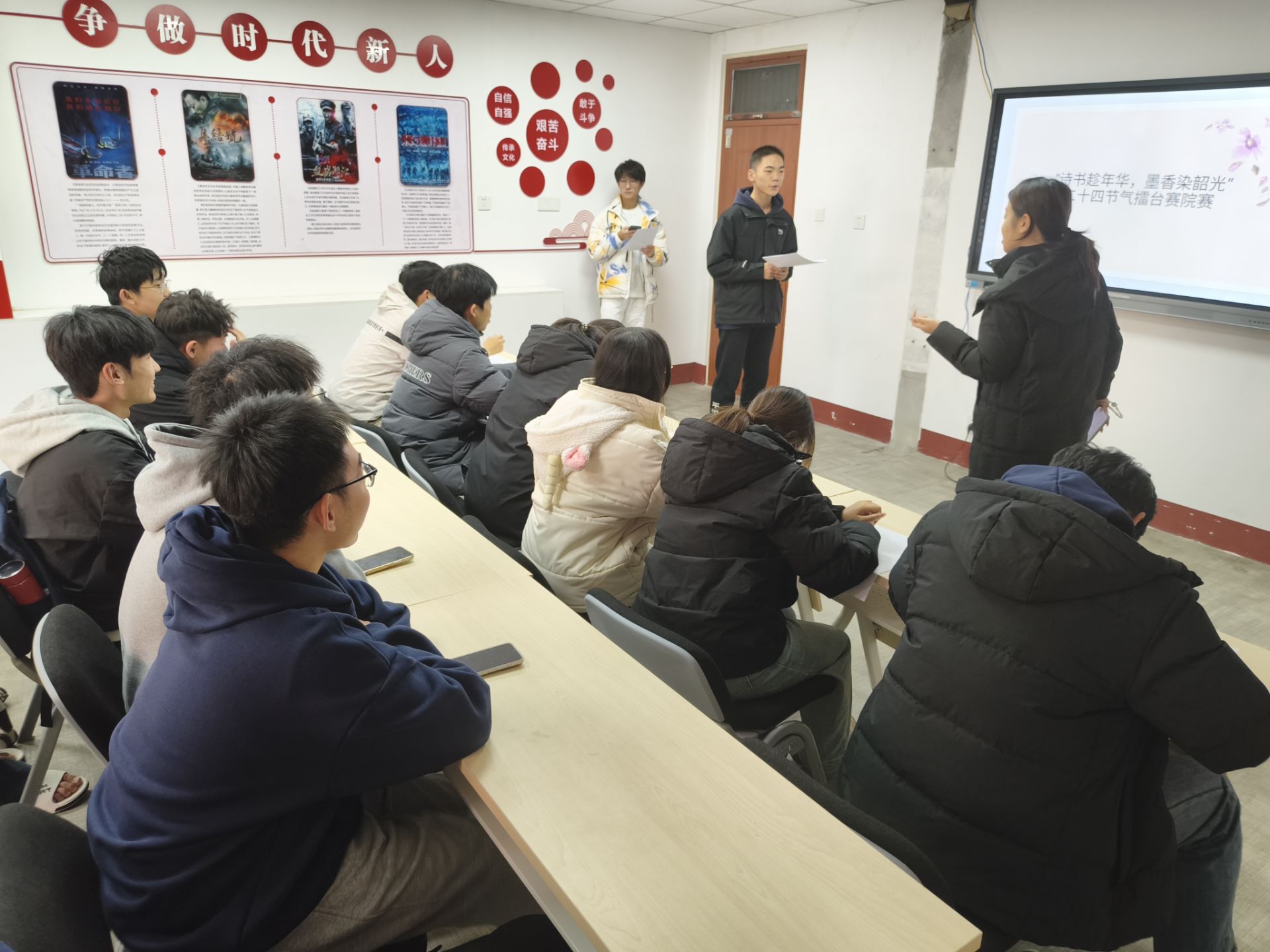 为传承中华优秀传统文化,深入挖掘二十四节气文化内涵,增强学生的文化自信与文学素养,12月19日,Beat365唯一官方网站于群星16先锋影院举办了“诗书趁年华,墨香染韶光”二十四节气诗词擂台大赛院内选拔赛。