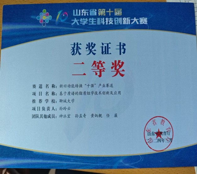 Beat365官网孙玲云同学在山东省第十届大学生科技创新大赛中荣获二等奖,对该获奖同学予以祝贺表彰。