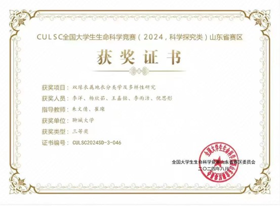Beat365官网王嘉铭同学在CULSC全国大学生生命科学竞赛(2024,科学探究类)山东省赛区中荣获三等奖,对该获奖同学予以祝贺表彰