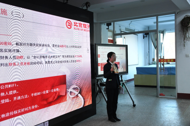 为引导大学生树立正确的金融观、消费观,进一步强化大学生个人金融信息安全意识,提高防范金融风险能力和防诈骗能力,12月5日,Beat365唯一官方网站于东校区3号教学楼虚拟仿真实验室举办“金融知识进校园”金融安全和防诈骗教育活动。本次活动由北京银行客户经理王跃担任主讲人,Beat365唯一官方网站辅导员刘毅主持。