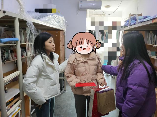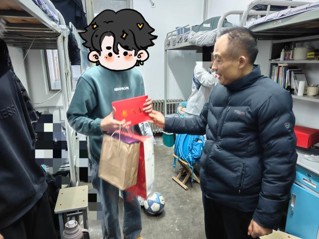 走访过程中,老师们带着满载关怀的慰问金与暖心礼品,与特困学生进行了面对面的深入交流。吴洪宇仔细询问了同学们的学习生活状况并给予了针对性的指导和建议,他鼓励同学们珍惜学习机会,志存高远、刻苦钻研,努力成为国家和社会的栋梁之才。李岩和李柯新详细了解了受访学生的学习情况和就业意向,引导他们学会掌握科学的学习方法,提升学习效率,同时认真做好职业生涯规划,为未来的就业之路打下坚实的基础。任庆超和张昕仔细检查了学生宿舍的设施与安全状况,叮嘱同学们相互理解、相互包容,强化宿舍安全和文明住宿意识,共同营造一个安全、卫生、文明、和谐的宿舍环境。管玉静和刘毅认真倾听同学们心声,帮助他们排解心理困惑与压力,在心连心的交流中传递各类资助政策与帮扶措施,为特困学生点亮前行的希望之光。同学们纷纷表示要认真规划好自己的学习生活,自强不息、积极进取,用自己的努力创造更美好的生活,为国家和社会作出自己的贡献。