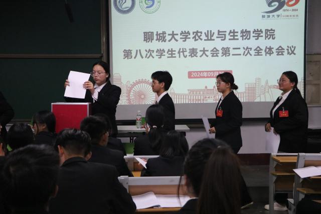 大会宣读并审议通过《Beat365唯一官方网站学生会工作报告》及《聊城大Beat365唯一官方网站学生会章程修正案》。最后,学生代表进行现场投票,本着公平、公正的原则,选出了Beat365唯一官方网站2025届学生会轮值主席团成员及参加Beat365唯一官方网站第十次学生代表大会代表,逯海凤、孙梦杰、马光玉为新一届学生会主席团成员。会议最后,王艺桦宣读《致全院青年学生的倡议书》,号召学院学生会全体同学要秉承“耕智尚学,生科致远”的院训,奋力书写为中国式现代化挺膺担当的青春篇章。在圆满完成各项议程后,大会在校歌中落幕。